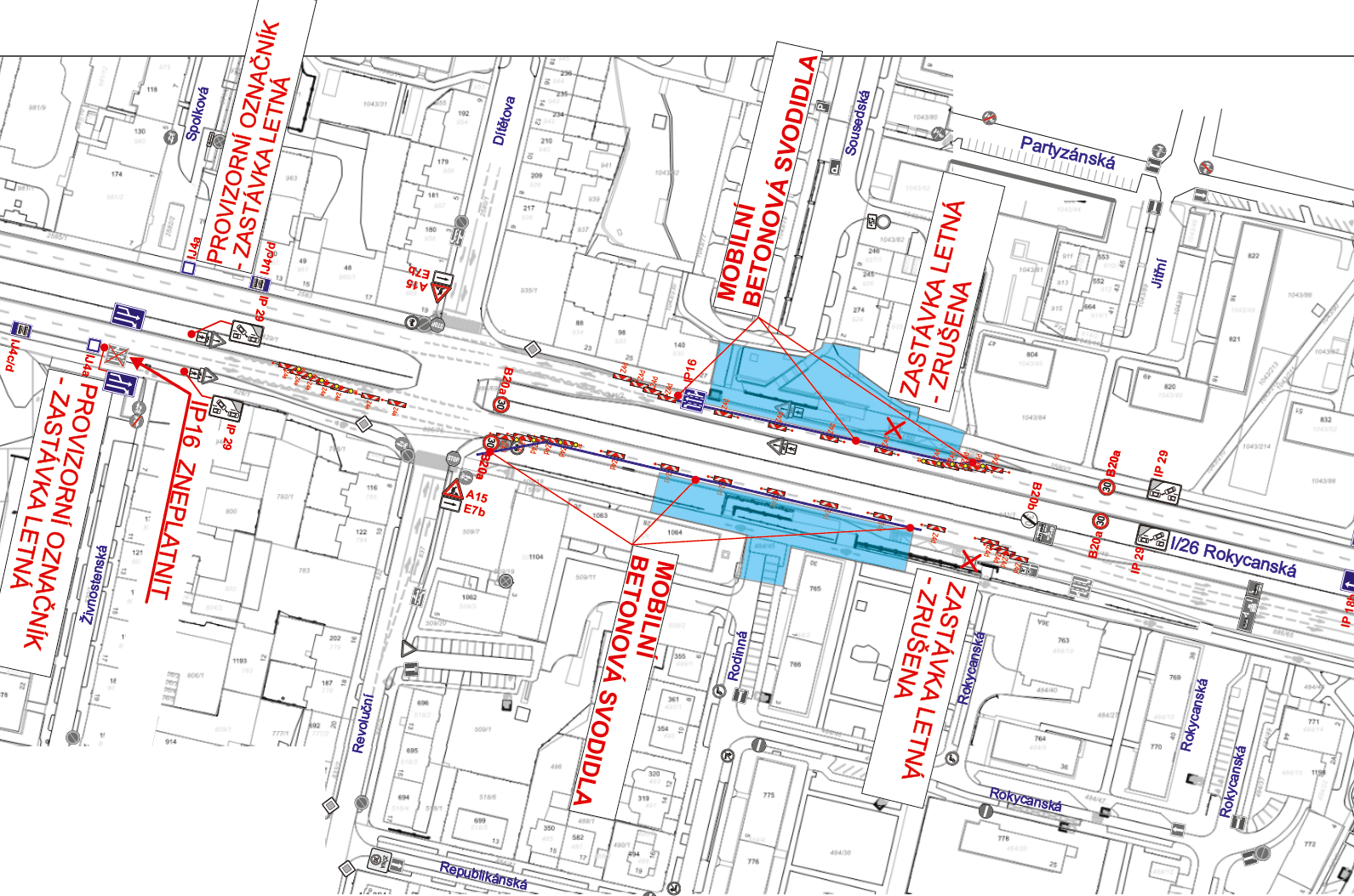 Dopravní opatření - výstavba lávky přes Rokycanskou